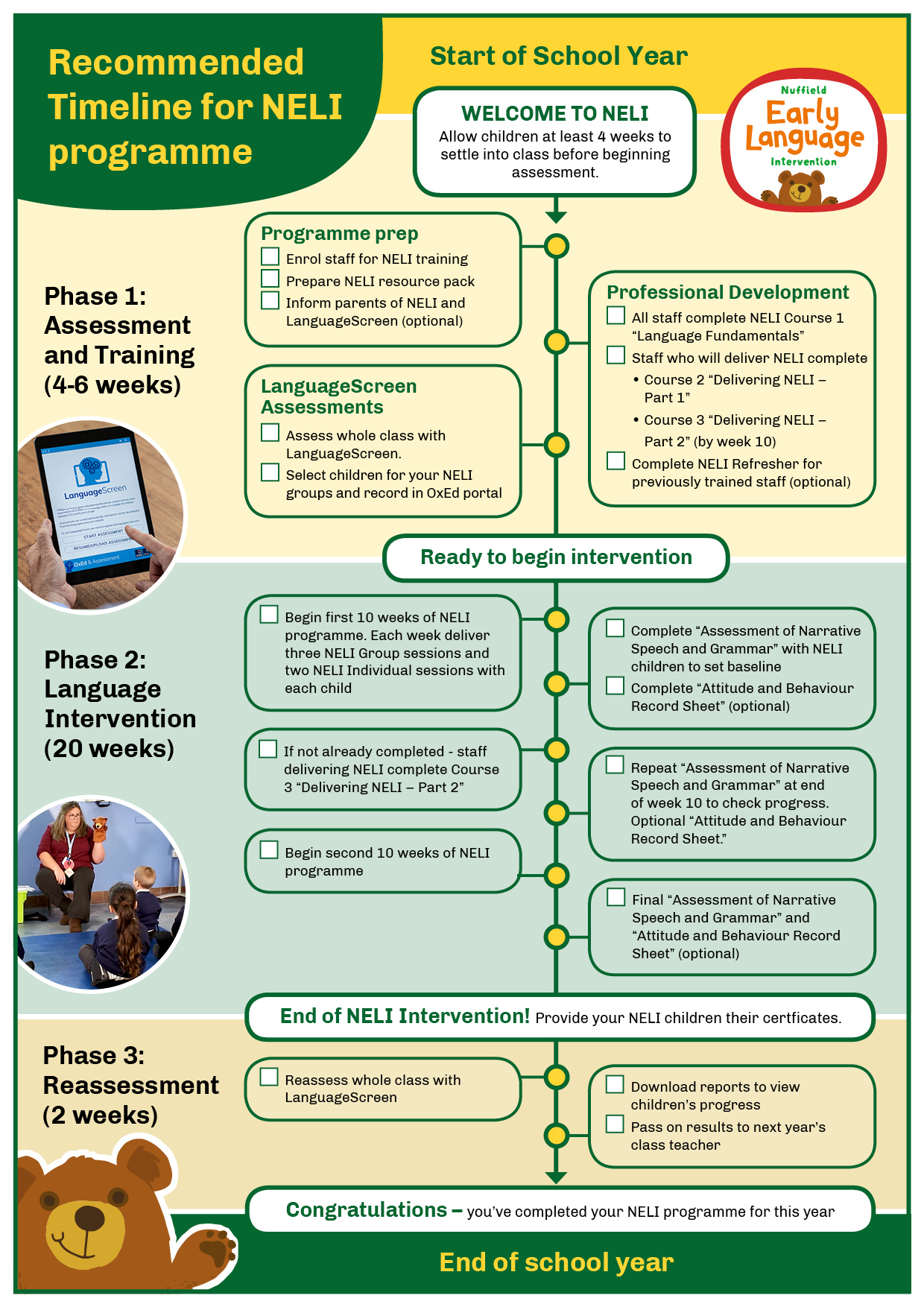 The suggested NELI timeline for new schools is below: